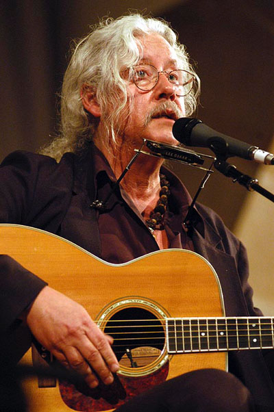 We saw Arlo Guthrie perform in Ogunquit last night. He was wonderful, a witty, and compelling musician. He is the traveling bard, teller of tall tales and entertainer. He is also a link to a tradition, two traditions in fact. For he is born of the Great American Hippy Tradition, for lack of more graceful prose. He performed at Woodstock in 1969. I was fourteen and at camp in Northern Michigan. Camp was remote, but we still learned of the concert that summer. The counselors, young men in their late teens and older, heard about it and passed it along. I recall sitting wide-eyed on my bunk and wishing I was part of that strange and exciting world. Guthrie related how he’d been called on stage at Woodstock a day early, and that he was in no condition to perform, citing the atmosphere at the concert: “A lot of hippies…” The audience laughed. He was sporting long locks of hair, every strand now silver-gray. We were still chuckling when he launched into Coming into Los Angles. The words came to me, to everyone, in a rush and we broke into song, “Don’t check my bags if you please, mister customs man.” Certainly I was not the only one transported to another time and place.