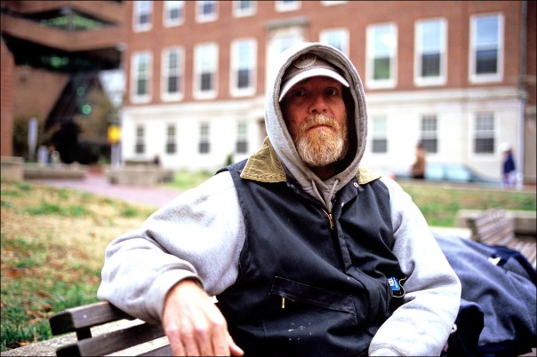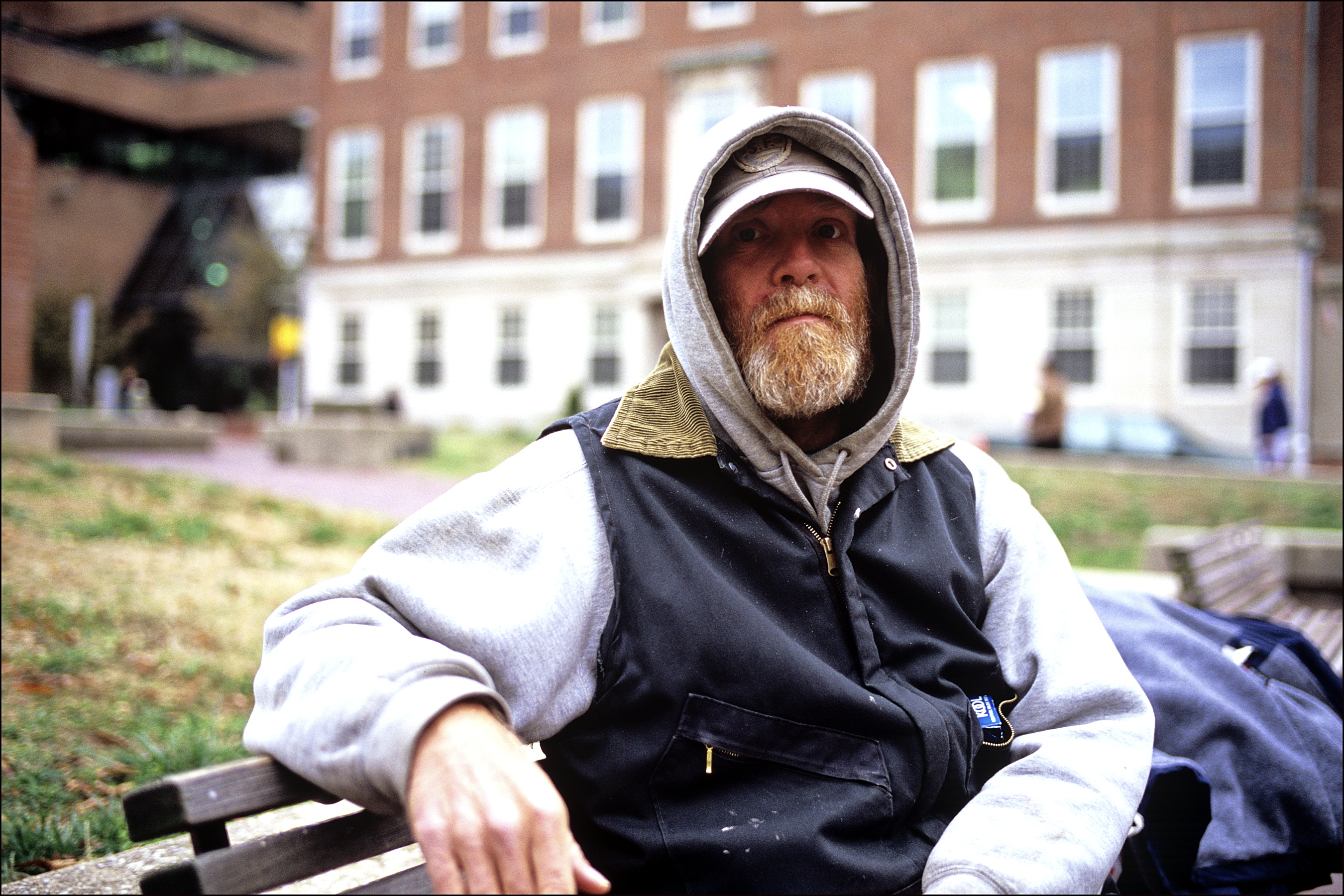 Michael sat on a bench, alone, in a park. It was the day before Thanksgiving. He has been homeless for two years, since he got divorced and “took up drinking and drugging.” He had been locked up and when he got out he discovered that his wife had thrown out everything of his and filed for divorce. His goal now is to get identification. “She threw out my social security card, my birth certificate, everything. I can’t get a job without identification.” He took responsibility, however, for the mess he was in. He confessed that he got into stuff he should not have, drugs specifically. “It is hard. Sometimes you just need something to take your mind away from all this. Trouble is, it’s still here when you wake up.”