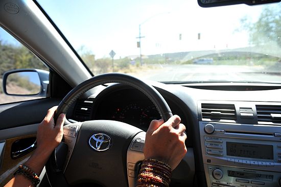 The thinking is interrupted as I see an object in the road and, too late, rush over it, recognizing it to be a bird. In my rear-view mirror I see it pulled by the vacuum of our truck and tumble like a wind-blown leaf. I pull over. It is a yellow-rumped warbler, just a little fleck of an animal. It is alive and blinks at me. Their bones are hollow and in my hand it seems to weigh less than air. I walk to the brim and place it in the tall side grass. Continuing on: