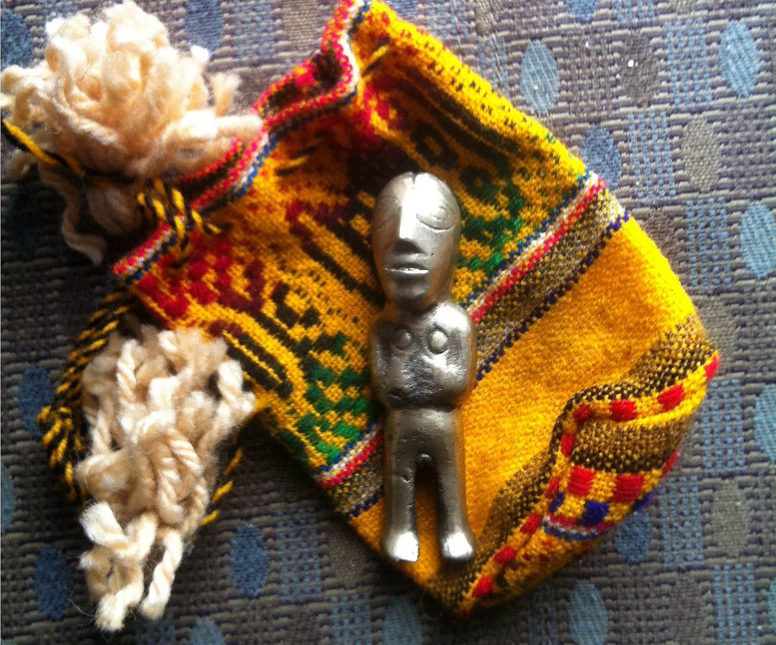 The building is old, like much of the Old Port, and even five flights up my space has a fireplace and a bold heavy mantle. The fireplace is no longer functional and I doubt it ever was. Who would carry wood up all those stairs? Atop the mantle I keep trinkets from travels. I have a Buddha from Thailand, another one from Tibet, still another one from India, and a beautiful silver Bodhisattva from Bhutan. A room cannot have too many Buddhas. I also have a cast-bronze dragon, long and lean, that I picked up in a market in China. It’s mouth is open and the tongue appears as fire. I just now realize that a fist-size piece of amber I bought in a village in Ecuador is missing. It had a wasp suspended in it, Jurassic Park kind of stuff. I must have lost it in a move. Most unusual is a lead doll. It stands about two inches tall and rests surprisingly heavy in the hand. I was having a restless night in Cusco, Peru, and decided to walk into town. It was dark and the square at the Cathedral of Santo Domingo was empty and I was sitting alone and enjoying the coolness when a man approached me. He was holding a small pouch which he handed to me. “Take this,” he said. I refused. “Please,” he asked. I told him I was just getting some air, that I didn’t have any money. “It doesn’t matter,” he said. “I came to give you this.” His English was good and he was nicely dressed. He opened the pouch and removed the doll. She is silver and naked and quite beautiful. The man disappeared into the mist. The doll rests in a place of honor on the mantel. Someday I hope to understand what happened that night.