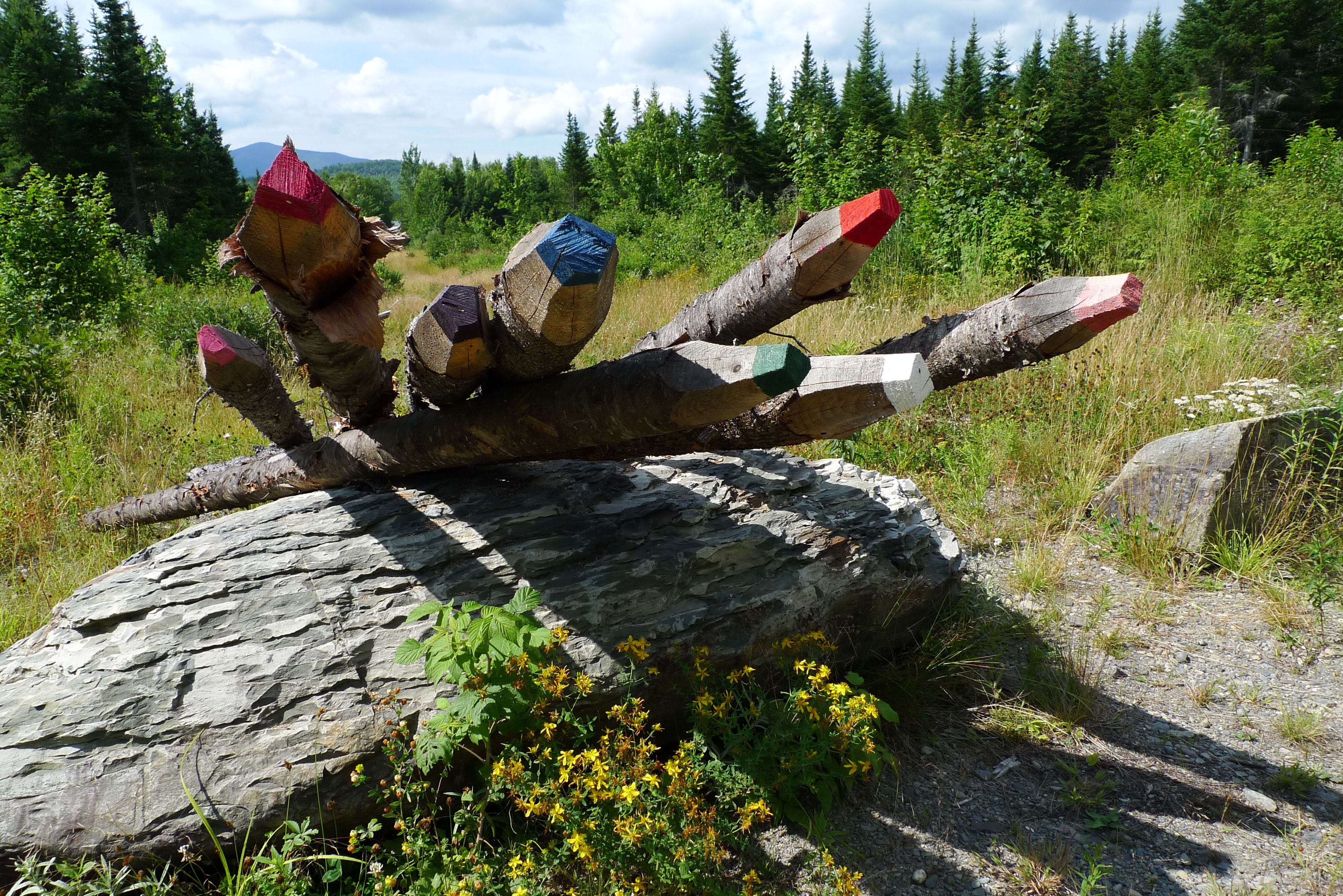 Do you recall the post I put up last summer, where, while exploring the North Woods, I happen across an art installation? Here is the photograph I took at the time: